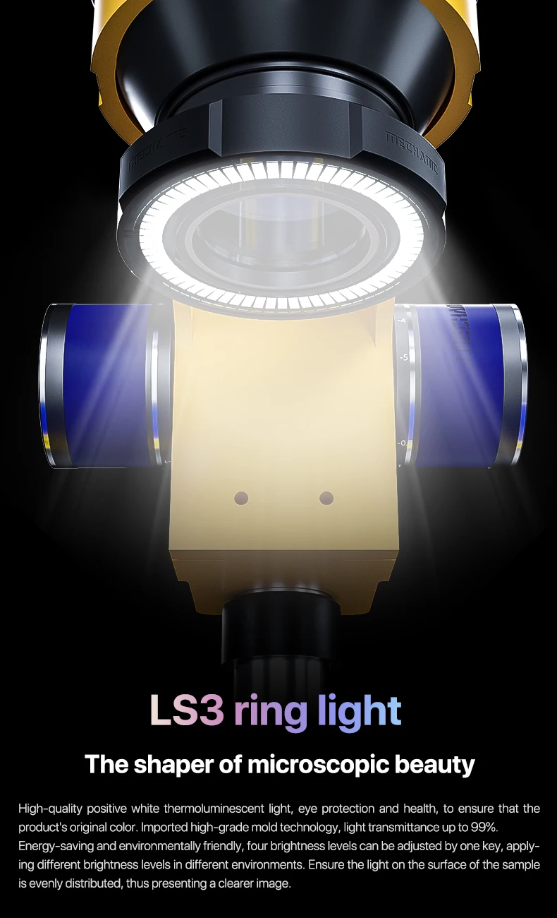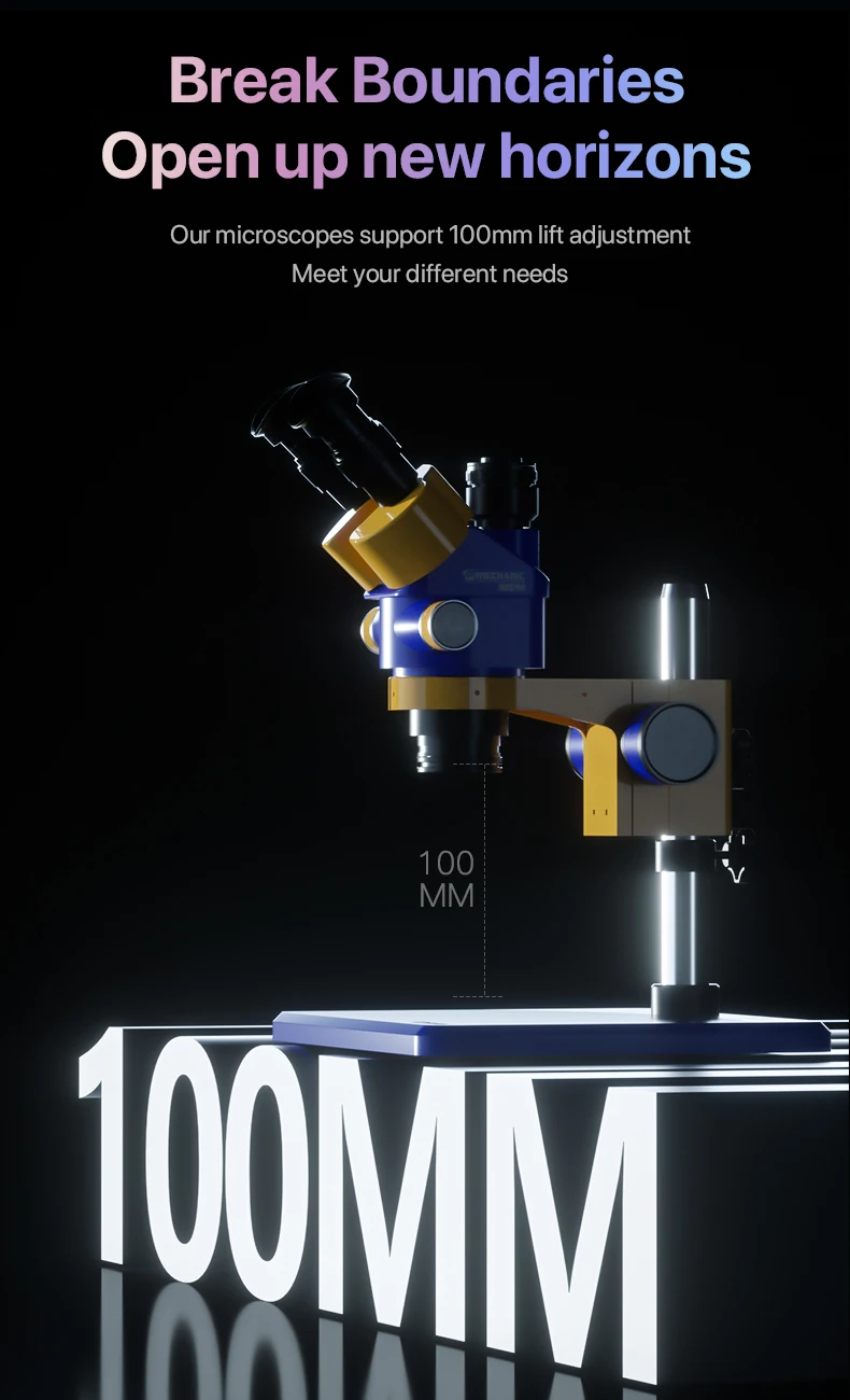 The mirror body can be adjusted freely, and the microscope body can be adjusted 360°, freeing up the workbench and not affecting other operations
