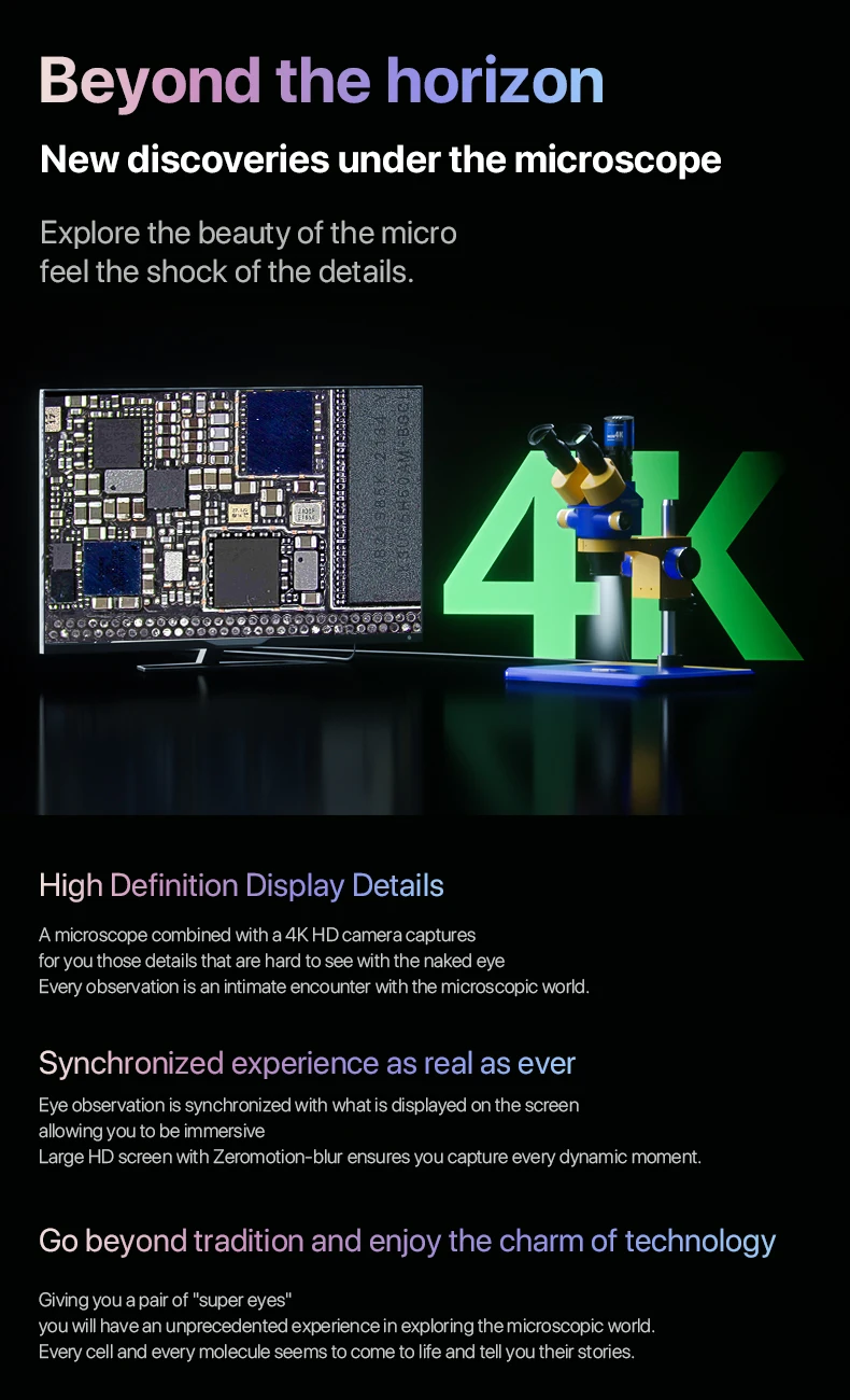 True trinocular high-definition display, matched with 4K high-definition camera display, eye-clearing observation is synchronized with the screen display content, high-definition large screen without smear (only the package includes the high-definition camera, the bare metal does not include the high-definition camera)