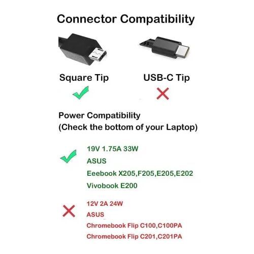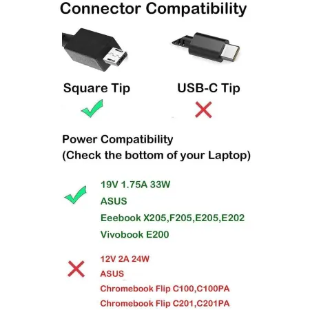 Alimentatore / Caricabatterie 33W 19V 1.75A 8.2 piedi (2.5 m) per PC portatile ASUS EeeBook X205T X205 X205TA X205TA-DH01 X205T-HATM0103 X205TA-US01 X205TA-UH01 X205TA-DS01 E200HA R209H Laptop Caricatore Adattatore