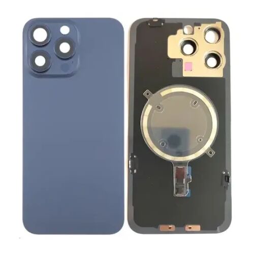 COVER POSTERIORE DI VETRO CON SUPPORTO PER APPLE IPHONE 15 PRO MAX 6.7 BLU